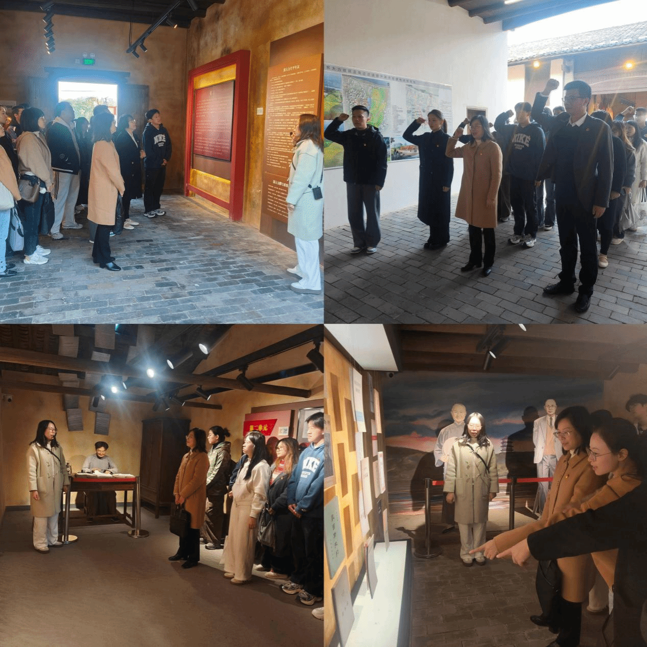 郭大力先生是经济学家、教育家、翻译家,《资本论》中文全译本首译者之一,其在艰苦卓绝的条件下深耕翻译事业的事迹,是马克思主义中国化进程中极具分量的红色印记,更是我们开展党性教育的生动教材。在讲解员的细致引导下,全体党员一同怀着崇敬之心参观故居,馆内陈列的泛黄译稿、破旧书桌、珍贵照片等文物史料,无不诉说着他“为真理而斗争”的执着追求。从克服物资匮乏的翻译困境到坚守马克思主义信仰的人生抉择,郭大力先生严谨治学的态度、无私奉献的精神,让每一位在场党员深受触动、倍感振奋。