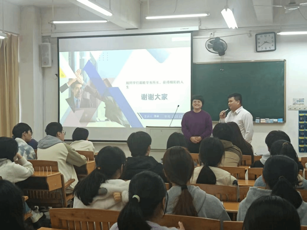 在交流环节中,同学们围绕就业意向选择、企业文化、岗位职责、薪酬福利及职业发展通道等方面踊跃提问。袁峰逐一作出详尽解答,并结合实际情况给予针对性建议,并积极邀请同学们前往企业实习,通过实践深入了解公司运营与团队氛围,为未来职业发展积累经验。