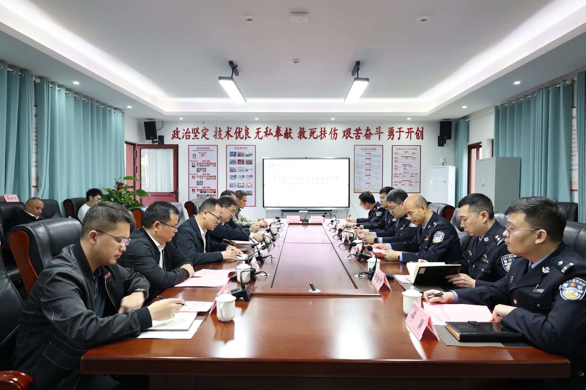 朱修援对曾腾云一行的到来表示热烈欢迎,向龙南市公安局长期以来对我校龙南校区事业发展的关心和支持表示感谢。他指出,学校安全稳定离不开公安机关的大力支持,希望以此次校警联动为契机深化合作,并提出三点合作倡议:第一,推动信息互通,筑牢风险预防“第一道防线”。第二,强化联动处置,提升应急响应“最后一公里”效能。第三,共建安全文化,营造“人人讲安全、处处是课堂”的育人氛围。