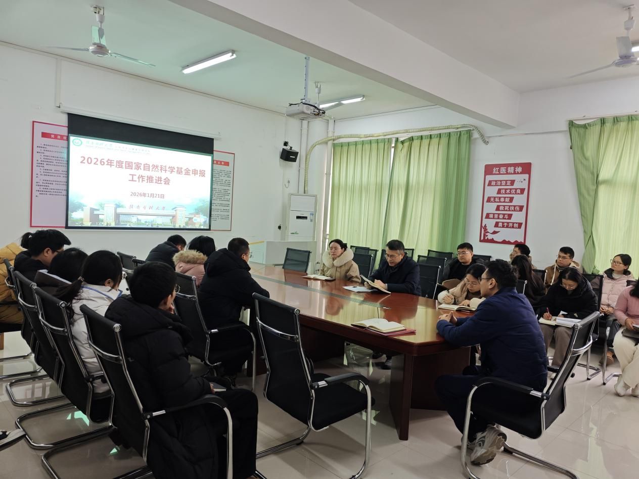 为深入贯彻落实学校2026年度国家自然科学基金申报工作推进会精神,扎实推进学院国家自然科学基金申报工作,1月21日,学院召开2026年度国家自然科学基金申报工作推进会。学院领导班子成员、高级职称及全体博士教师参加会议。
