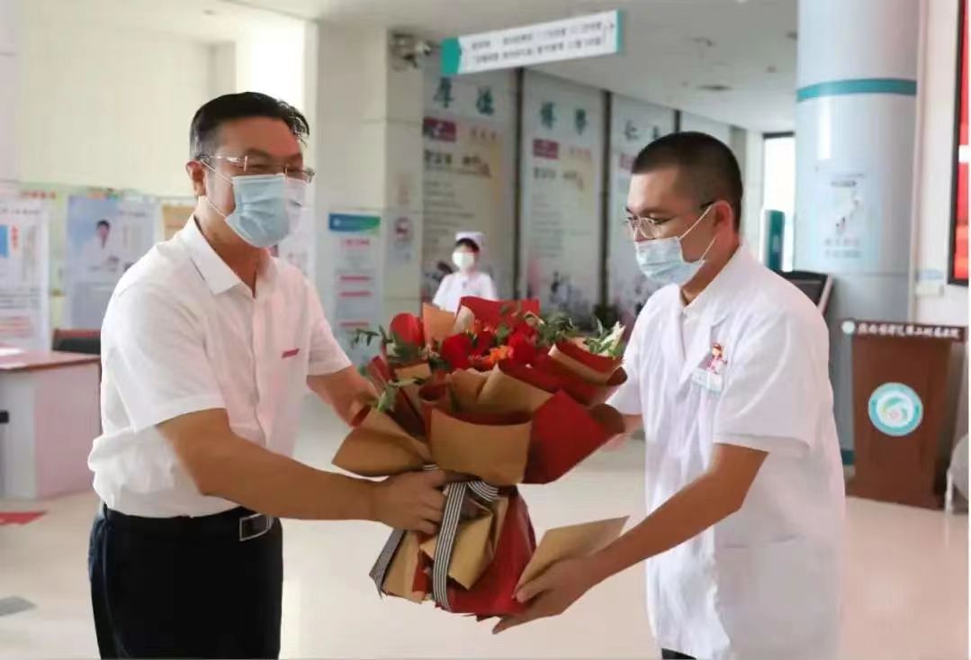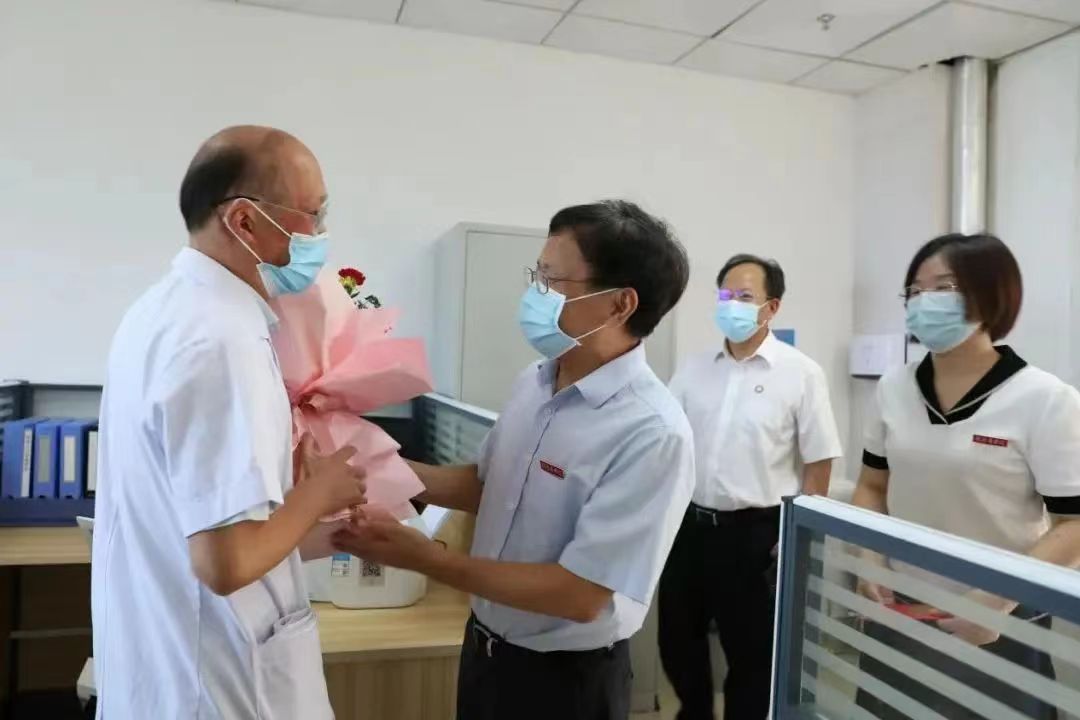 学校党委副书记曾泽鑫代表学校党政到第二附属医院走访慰问,为一线医师代表送上节日鲜花及慰问金。学校工会主席钟美珠,党办、校办副主任刘乐亮等陪同走访慰问。