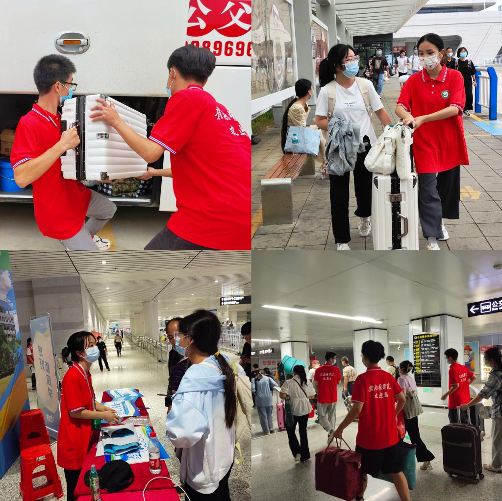 8月31日早上伴着晨曦,一群群身穿红色文化衫的志愿者分别在火车站、火车西站、飞机场迅速进入工作状态。当接站员带领着第一批新生与家长来到出站口时,志愿者面带微笑,纷纷迅速上前,积极主动地搬运行李,耐心礼貌地答疑解惑,井然有序地指引乘车,用阳光、饱满、热情的精神面貌迎接每一位新生和家长。