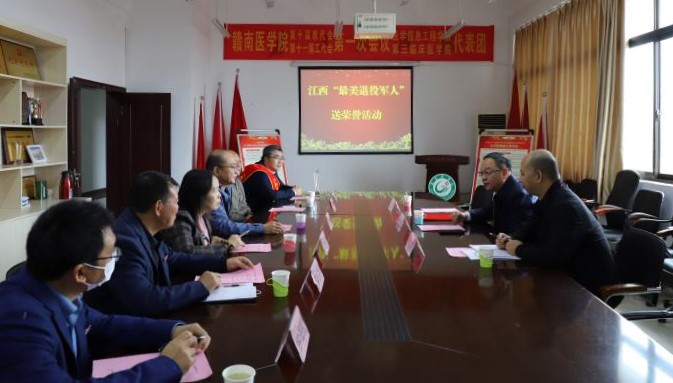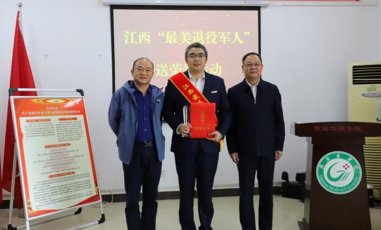 11月4日上午,赣州市退役军人事务局党组成员、副局长余军一行3人来我校,为医学信息工程学院李晓鹏老师颁发2022年“江西最美退役军人”荣誉证书。学校党委委员、纪委书记肖树辉出席活动。