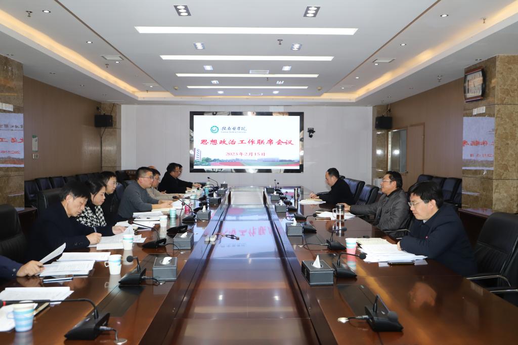 2月15日,我校在黄金校区召开思想政治工作联席会议,研究部署新学期学生入校后思想政治工作。学校党委副书记曾泽鑫,党委委员、宣传部长廖志平,党委委员、统战部长赖传景出席会议,相关职能部门、各二级学院分管学生工作负责同志参会。