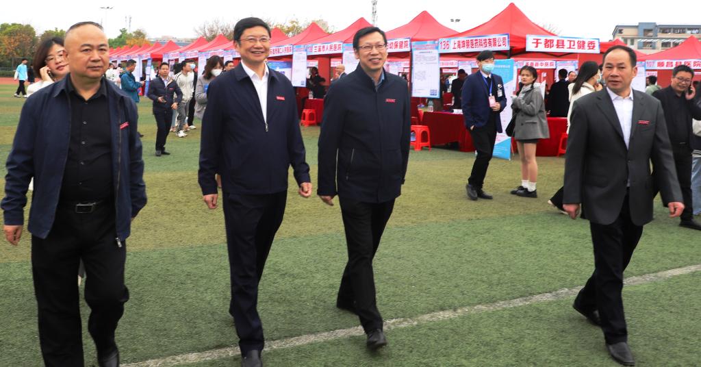 省教育厅高教处副处长朱其昌,赣州市人力资源和社会保障局党组书记、局长薛斌,江西省就业创业服务中心代表亲临现场指导。