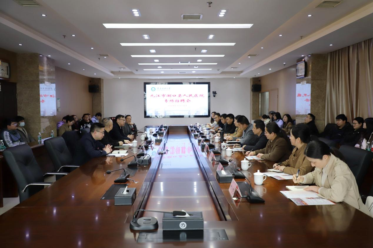 3月13日,九江市湖口县人民医院党委书记屈新云一行来校召开专场招聘会,吸引我校2024届50余名毕业生参加。学校党委委员、副院长彭维杰现场视察并指导。