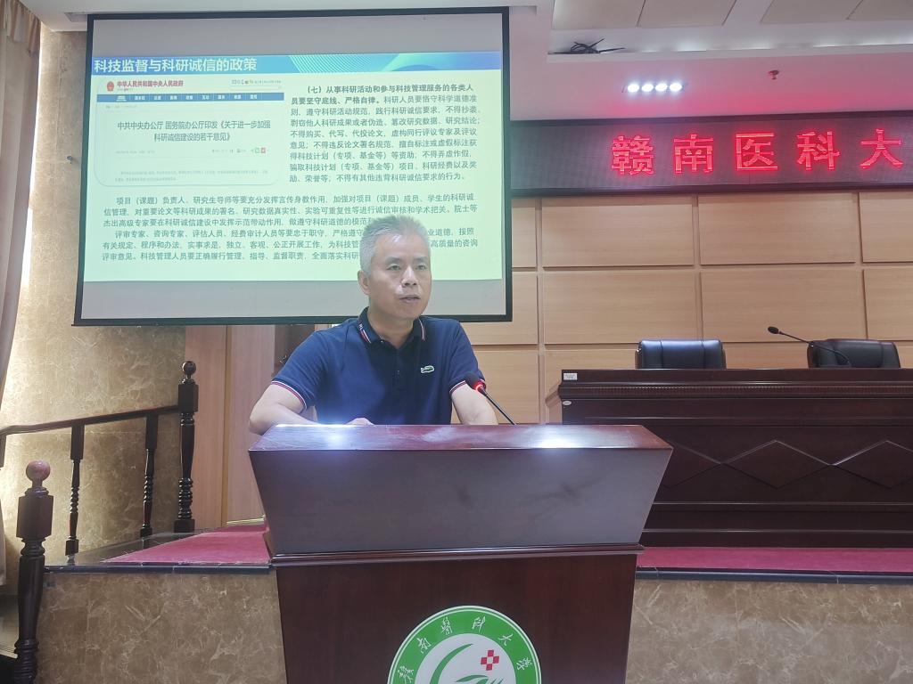 6月26日,我校在黄金校区召开2024年科研工作专题会。江西省科技厅监督评估与科技安全处四级调研员李晓仔、赣州市卫健委四级高级主管杨硕出席并作专题报告,学校党委委员、副校长彭维杰出席会议并讲话。会议由科研处处长刘志平主持。