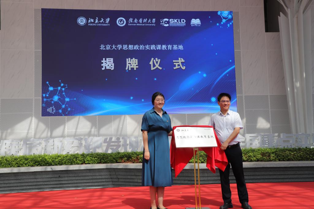 北京大学基础医学院党委副书记孙傲伊,赣南创新与转化医学研究院院长李红良共同为“北京大学思想政治实践课教育基地”揭牌。
