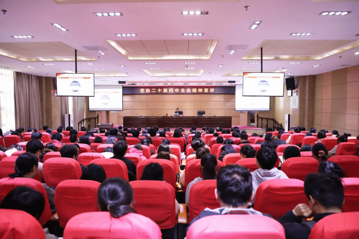 11月18日上午,学校党委书记、校长张小康在蓉江校区为学校师生宣讲党的二十届四中全会精神。