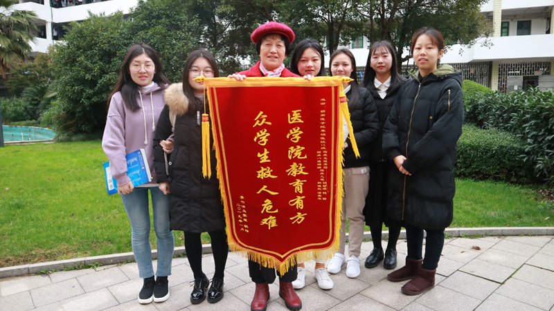 “医生说,再晚一点送过来,我就会全身瘫痪。感谢你们,谢谢你们救了我。”1月9日上午9点,在学校章贡校区8栋宿舍楼前,年过花甲的李竹清老人紧紧握住齐园等6名学生的双手,心情非常激动说。并将写有“医学院教育有方,众学生救人危难”的锦旗送给6位同学。