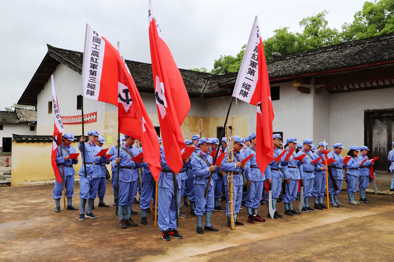 在前往瑞金途中,学员们分组高歌《十送红军》《毛委员和我们在一起》等红歌;在华屋红军村,学员们参观新旧华屋村和村史馆,在村民家同吃同住同劳动,感受改革开放给乡村带来的巨大变化。