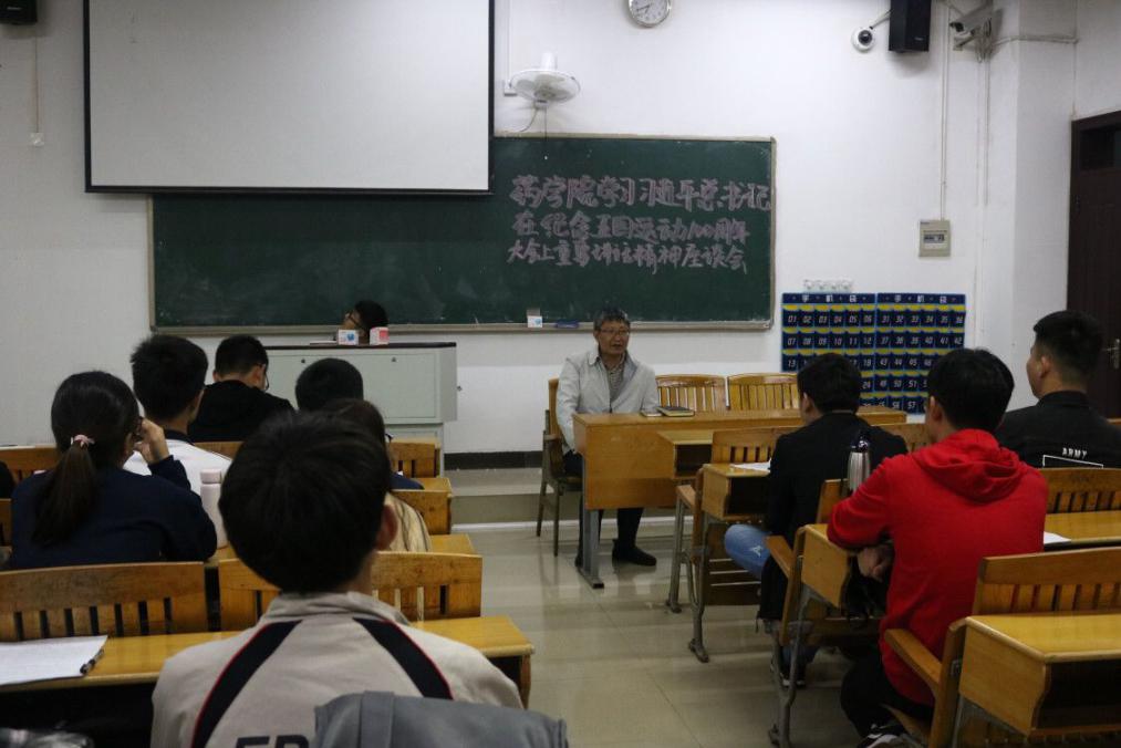 5月6日晚,我校药学院学子学习座谈习近平总书记在纪念五四运动100周年大会上的重要讲话。该院副院长赖日勇出席并讲话,该院学工办、学生党员和主要学生干部参会。