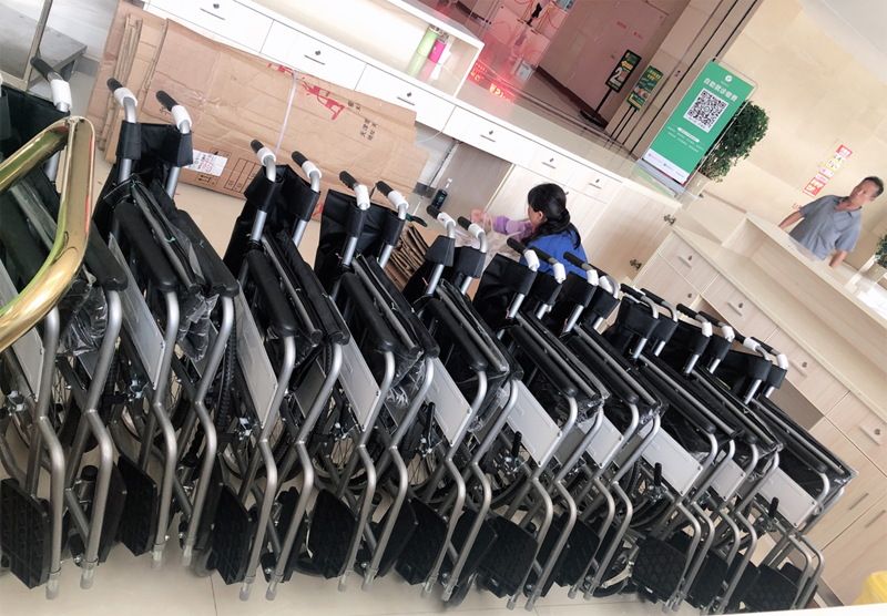 5月19日,蓝先生购买的10台轮椅已到达一附院导诊室,10台轮椅被命名为“蓝先生爱心轮椅”。