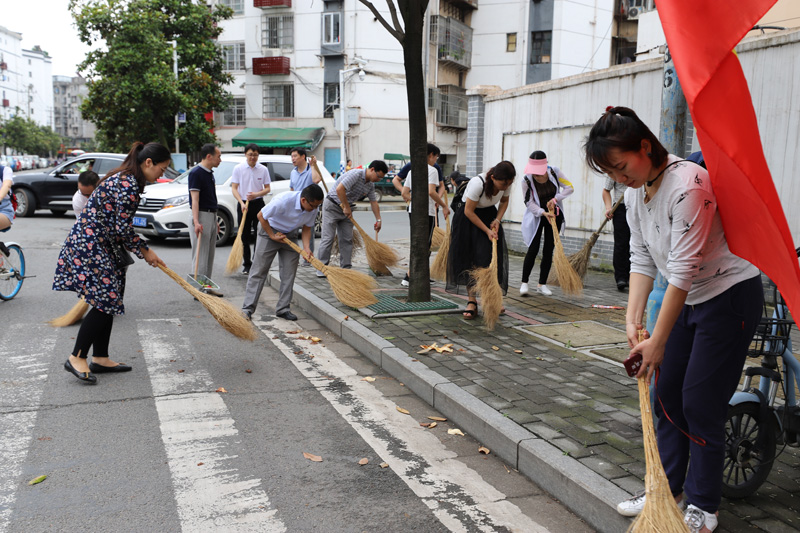 在医学院和环城路上,我校机关党委近30名党员青年志愿者扫垃圾、拔杂草、清烟头,地毯式把道路两边打扫得干干净净。