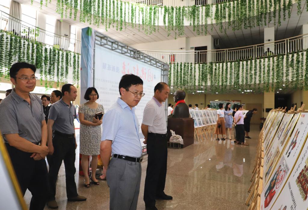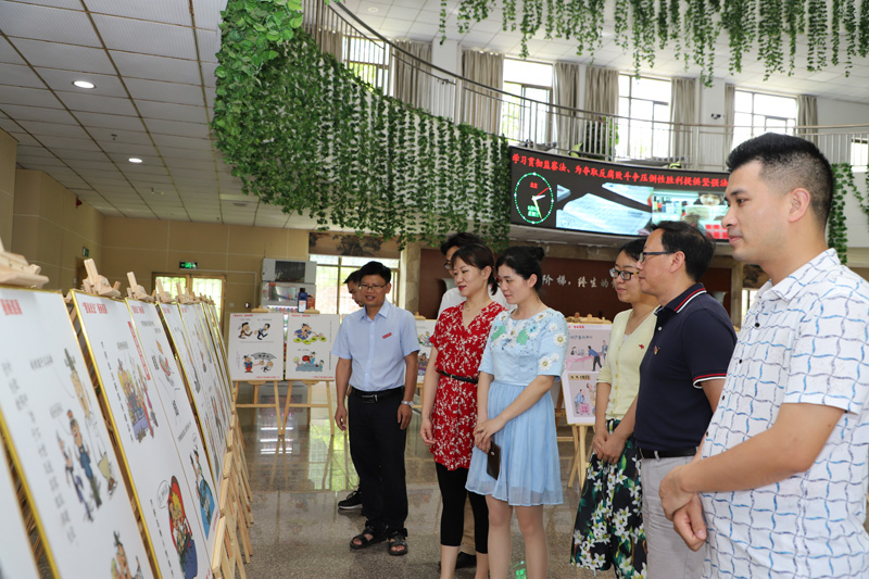 6月5日下午,学校在家校领导李恭进、曾泽鑫、陈亮、黄瑞忠、肖树辉、彭维杰与师生一道,在黄金校区图书馆观看“图说纪法”漫画巡展。