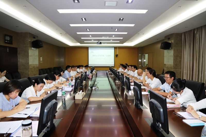 黄晓东从“写材料容易吗?写材料重要吗?公文有什么特点?”等三个问题出发,启迪学员思考;通过十几年的公文写作经验,将宏观框架和微观事例相结合,生动鲜活地唱响公文写作的“五步曲”。他还详细分享了公文写作中找资料、列提纲、拉初稿、修改完善、推材料等五个步骤,重点介绍了调研报告撰写案例,道出“公文写作道路千万条,‘多写’第一条”的公文写作“真经”。讲座现场气氛热烈,学员受益良多。