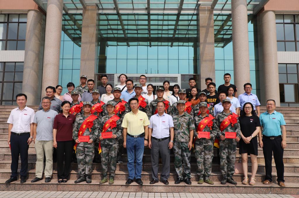 9月8日上午,我校2019年大学生参军入伍欢送会在黄金校区召开。学校党委副书记曾泽鑫,党委委员、副校长叶军明出席会议,武装部、宣传部、学工处、团委等部门领导、各二级学院负责人、12名参军入伍新兵及班主任、在校生代表参加欢送会。