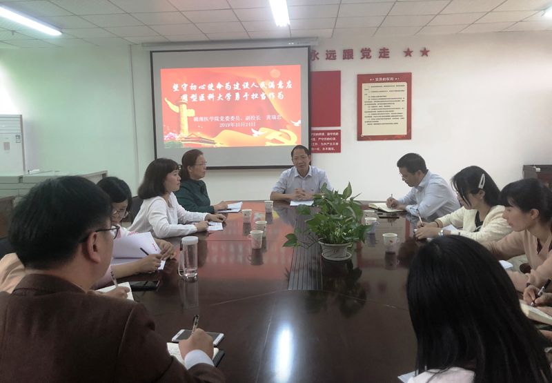 10月24日下午,学校党委委员、副校长黄瑞忠到人文社科学院作了以《坚守初心使命、为建设人民满意应用型医科大学勇于担当作为》为题的“不忘初心、牢记使命”专题党课。学院全体教工党员聆听了报告。