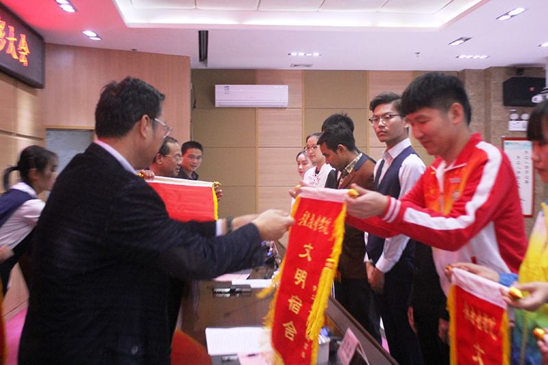 11月14日下午,学校举行了2019年上半年学生文明宿舍表彰暨团建工作进宿舍推进会,学校党委副书记曾泽鑫,党委委员、副校长叶军明出席。会议由学工处处长王建发主持。