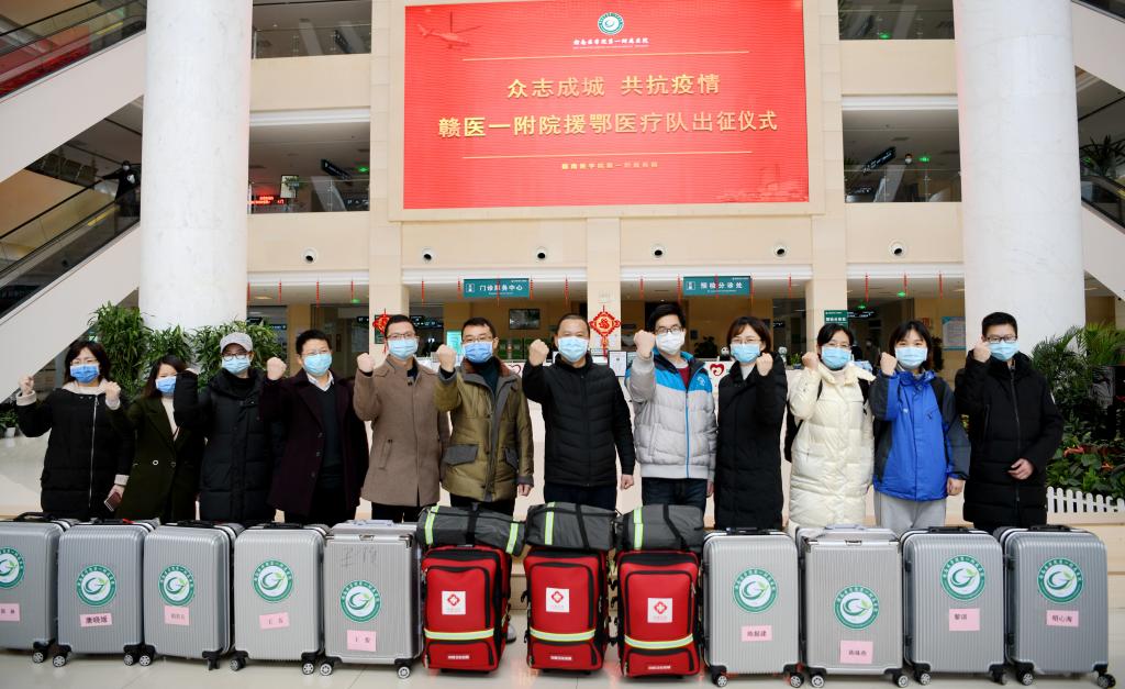 2月11日上午,我校一附院第四批支援湖北医疗队12名队员作为江西省对口支援随州市医疗队成员出征,随即奔赴湖北随州进行医疗救援。
