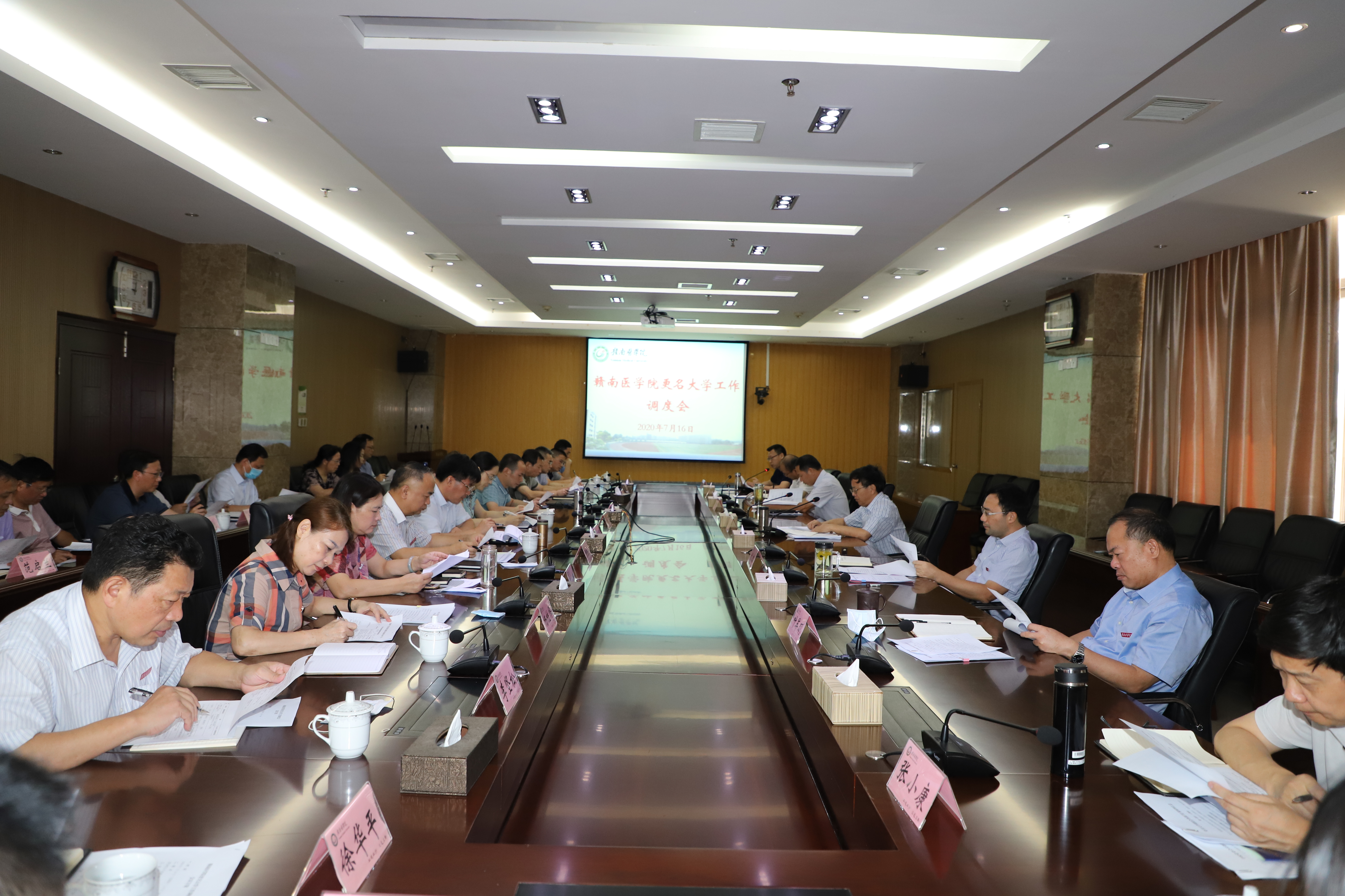 7月16日上午,学校在黄金校区综合办公大楼401会议室召开更名大学工作调度会。学校领导李恭进、刘潜、黄瑞忠、叶军明、肖树辉、张小康、彭维杰出席,学校更名大学领导小组成员、更名大学办公室成员参加了会议。