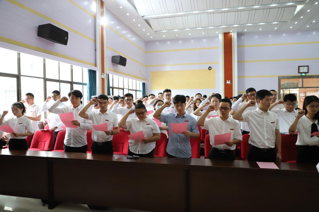 130余名新进教师代表在人事处处长黄春平带领下郑重宣誓,忠诚于党的教育事业,切实履行教书育人的神圣职责,做有理想信念、有道德情操、有扎实学识、有仁爱之心的人民教师。
