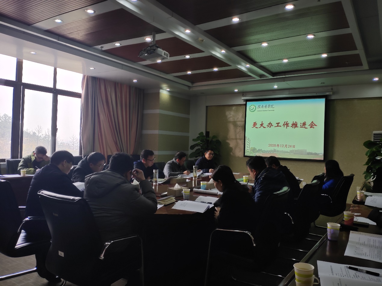 12月24日上午,我校更名大学工作办公室在黄金校区召开工作推进会。校党委委员、副校长彭维杰主持并讲话。各工作组联络员及纪委相关同志参加会议。