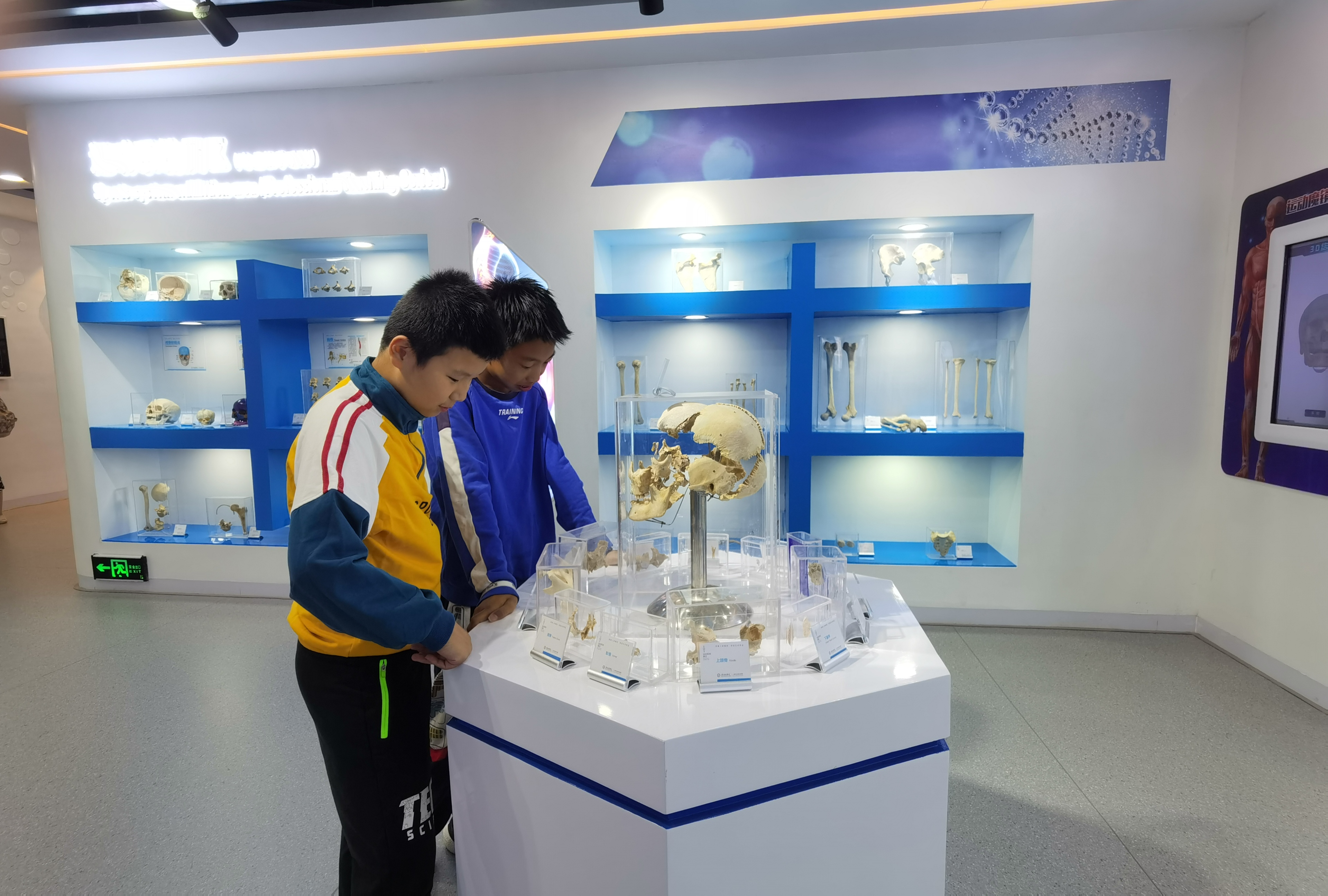 学校人体生命科学馆由“生命之初”、“生命之本”和“生命之光”三个主体模块展区构成,辅以互动体验区,学习交流区和健康科普、学生人体解剖学手绘作品等展区,展品约1000余件。