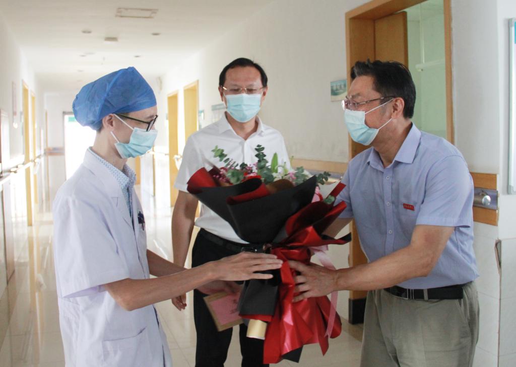 8月19日,在第四个中国医师节来临之际,学校党委书记李恭进,党委副书记、校长张小康,党委副书记曾泽鑫分别到三附院、一附院、二附院走访慰问,向全体医师致以节日的问候,为医师代表送上慰问金和鲜花。学校党委委员、组织部长甘雅芬,党委委员、宣传部长廖志平陪同走访慰问。