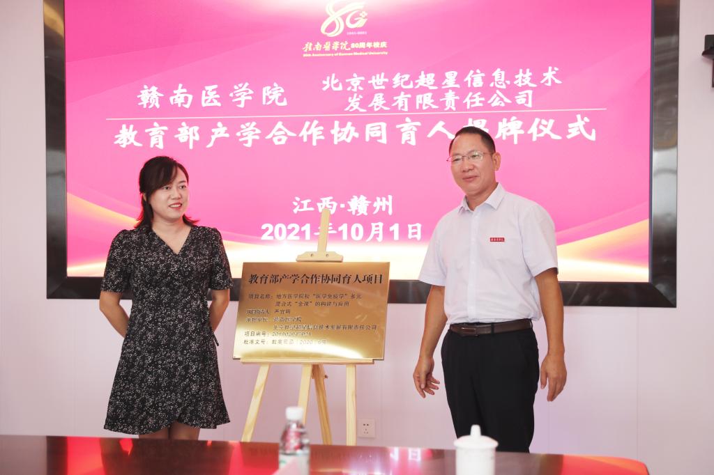 启动仪式上,黄瑞忠代表学校分别与北京超星、山东泽众、上海梦之路为获批的3项教育部产学合作协同育人项目揭牌。