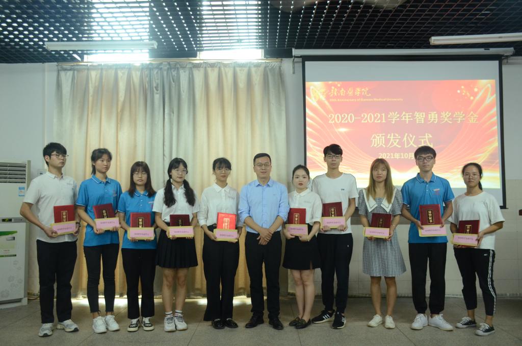 在母校建校八十周年之际,我校2005届优秀校友卢斌和周濛雅夫妇在康复学院设立智勇奖学金。10月2日上午,在黄金校区康复医学楼举行首次智勇奖学金授奖仪式,学校党委委员、纪委书记、省监委驻校监察专员肖树辉出席活动,该院院长温优良主持会议,院领导、老师及学生50余人参加活动。