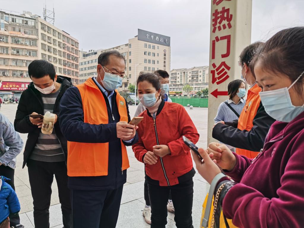 活动中,党员同志们分别在各入院口及门诊大楼入口引导来院患者及家属扫码、测体温,对群众在扫码获取赣通码过程中出现的各种问题,耐心讲解,热心解决。