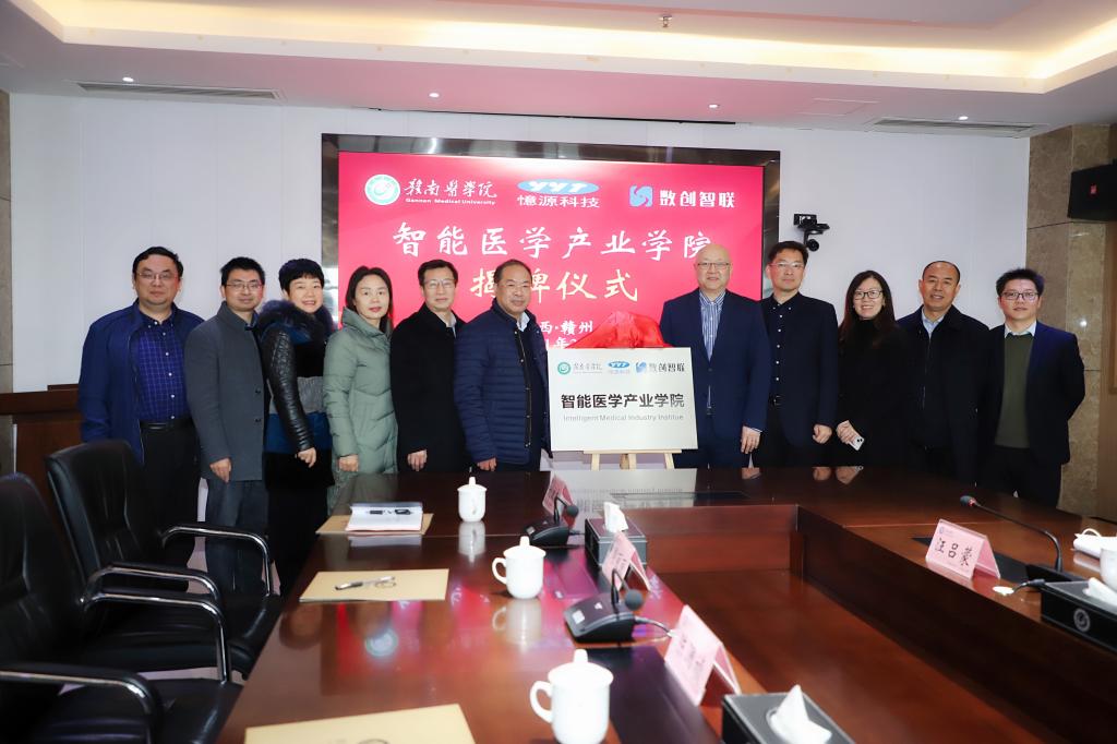 3月23日上午,赣南医学院智能医学产业学院揭牌仪式在黄金校区举行。江西憶源多媒体科技有限公司董事长徐林楠、江西数创智联科技产业发展集团有限公司董事长吴震宇,学校党委委员、副校长叶军明等出席仪式。