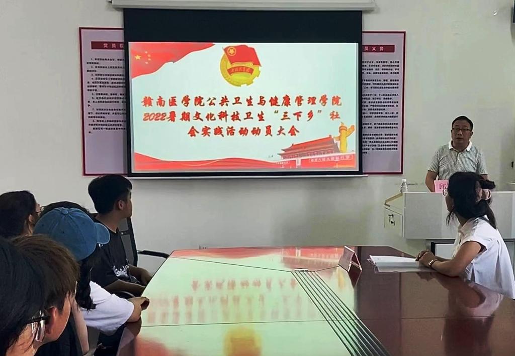 6月27日,公共卫生与健康管理学院在黄金校区举行2022年暑期“三下乡”社会实践动员大会。该院党委副书记邱伟及全体志愿者20余人参加。