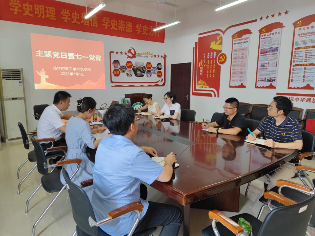 7月1日上午,药学院教工第六党支部在黄金校区开展“庆祝建党101周年,喜迎二十大 重温习近平总书记在庆祝中国共产党成立100周年大会上的重要讲话精神”主题党日暨“七一”专题党课活动。药学院党委书记彭磊,党委委员、副院长黄浩以普通党员身份参加活动。