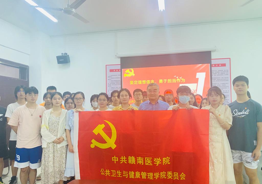 7月1日,公共卫生与健康管理学院院长黄诚以“坚定理想信念,勇于担当作为”为主题,给该院学生第三党支部党员、入党积极分子讲授一堂生动而深刻的“七一”专题党课。