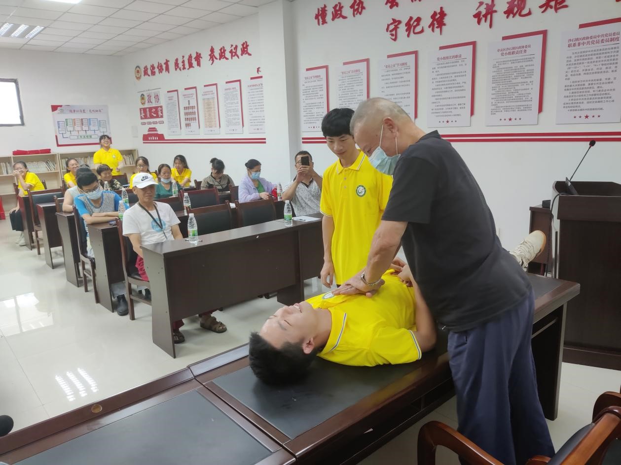 在吉泰社区,实践团队员不仅为居民讲解了《开国上将——肖华》等红色故事,还开展了“心理健康进社区 服务居民零距离”“普及卫生应急知识 提高卫生应急能力”等关爱居民身心健康服务活动,利用专业知识教居民如何辨别和改善心理健康问题,并手把手指导居民海姆利克、心肺复苏等一系列急救方法。