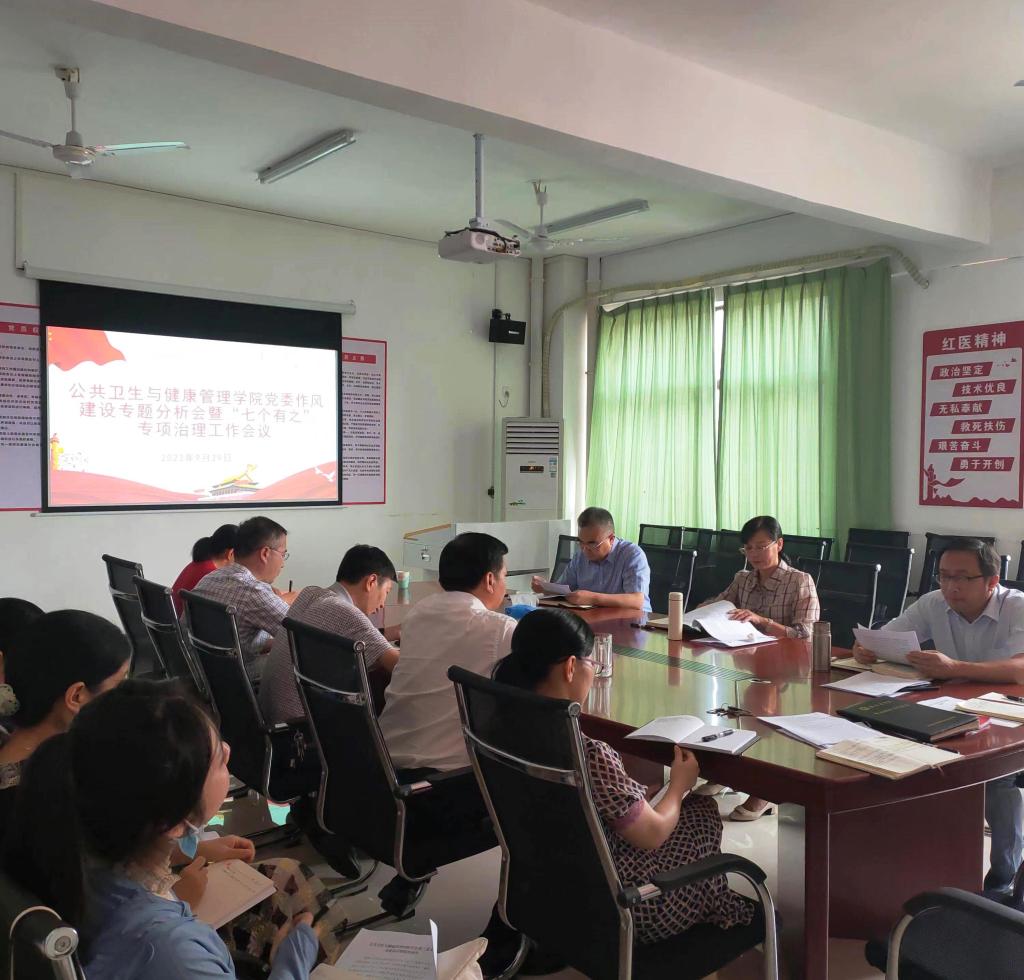 9月29日,公共卫生与健康管理学院党委召开作风建设专题分析会暨“七个有之”专项治理工作会议,学院党政领导班子成员,科室负责人、党支部书记参加。会议由学院党委书记范启兰主持。