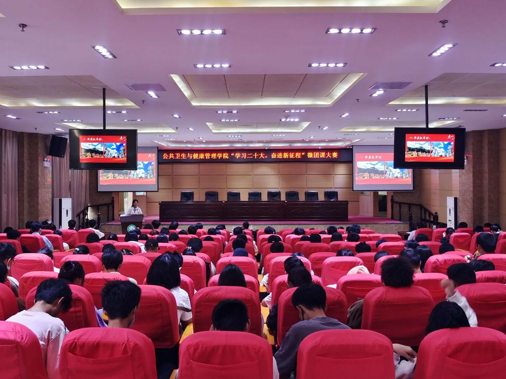 10月23日,公共卫生与健康管理学院在黄金校区举办“奋进新征程”主题微团课大赛,该院党委副书记邱伟、学工办老师刘恬及2022级全体新生100余人参加。