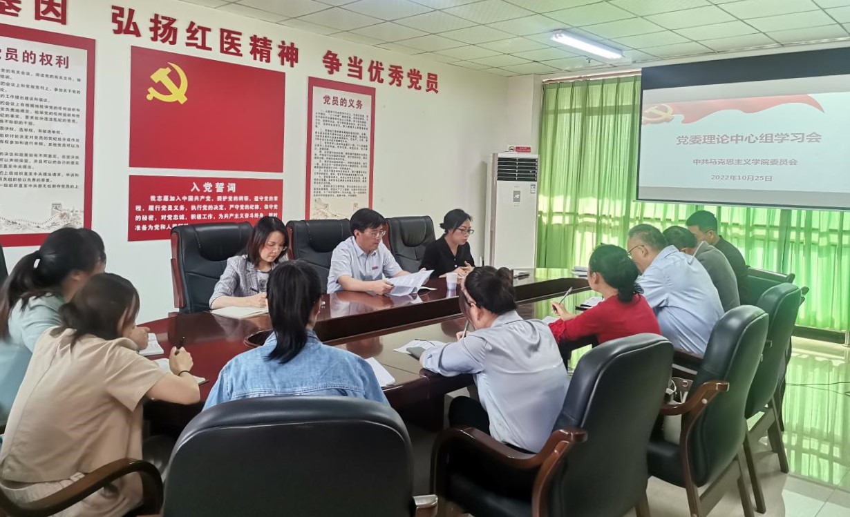 廖志平强调,中国共产党第二十次全国代表大会是一次具有关键历史意义的大会,党的二十大报告是一篇光辉的马克思主义纲领性文献。学院要按照学校统一部署要求,精心筹划、周密推进,组织学院教师学习、宣传、贯彻党的二十大精神。一是要迅速掀起学习贯彻热潮,全面学、系统学、深入学,以坚定的政治立场学深悟透党的二十大精神,切实把思想和行动统一到党的二十大精神上来。二是要广泛地开展宣传宣讲活动,通过研讨、专题学习、理论研究等各种形式,让党的最新创新理论成果在赣医落地生根、开花结果。三是要融入实践抓落实。学院承担的思政课程、法学专业课程要加快步伐把党的二十大报告融入课堂。每一位教师要从党的二十大报告中获得滋养,把党的二十大报告融入自身的工作、生活、思想中,投身到特色鲜明、人民满意、国内知名的高水平应用型医科大学的建设中。