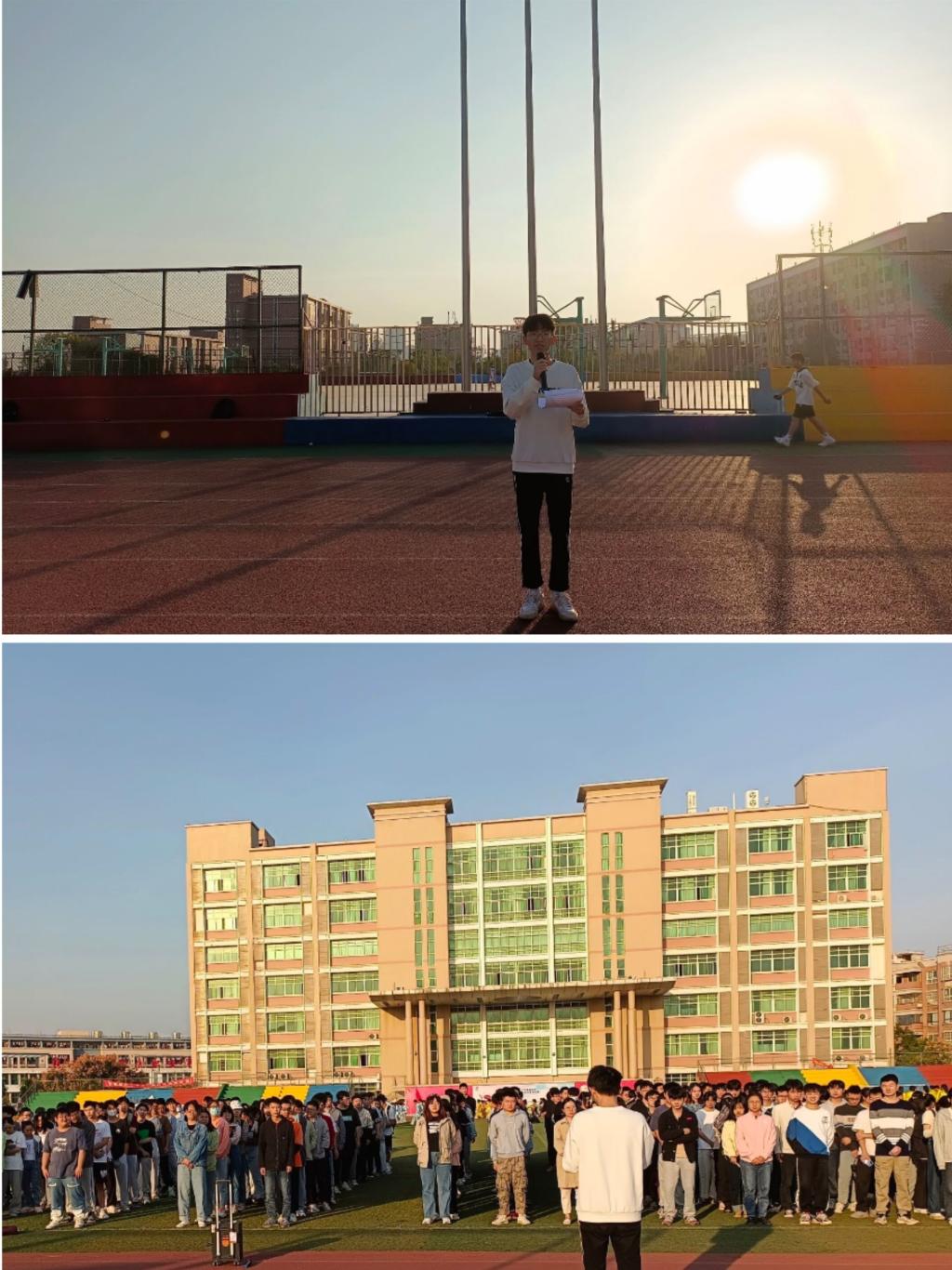 该院2020级物联网工程本科二班陈兴同学发表国旗下演讲。他表示,身为新时代的大学生倍感幸福,为祖国近十年取得的巨大成绩感到深深的骄傲和自豪,他将谨记习近平总书记对青年的希望和寄语,做有理想、敢担当、能吃苦、肯奋斗的新时代好青年,带头刻苦学习,扎实工作,做到德智体美劳全面发展。