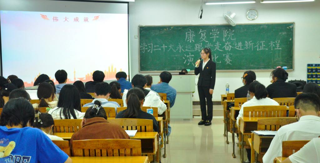 11月11日晚,康复学院开展“学习党的二十大,奋进新征程”演讲比赛。该院学工办老师以及近80名在校生参与。