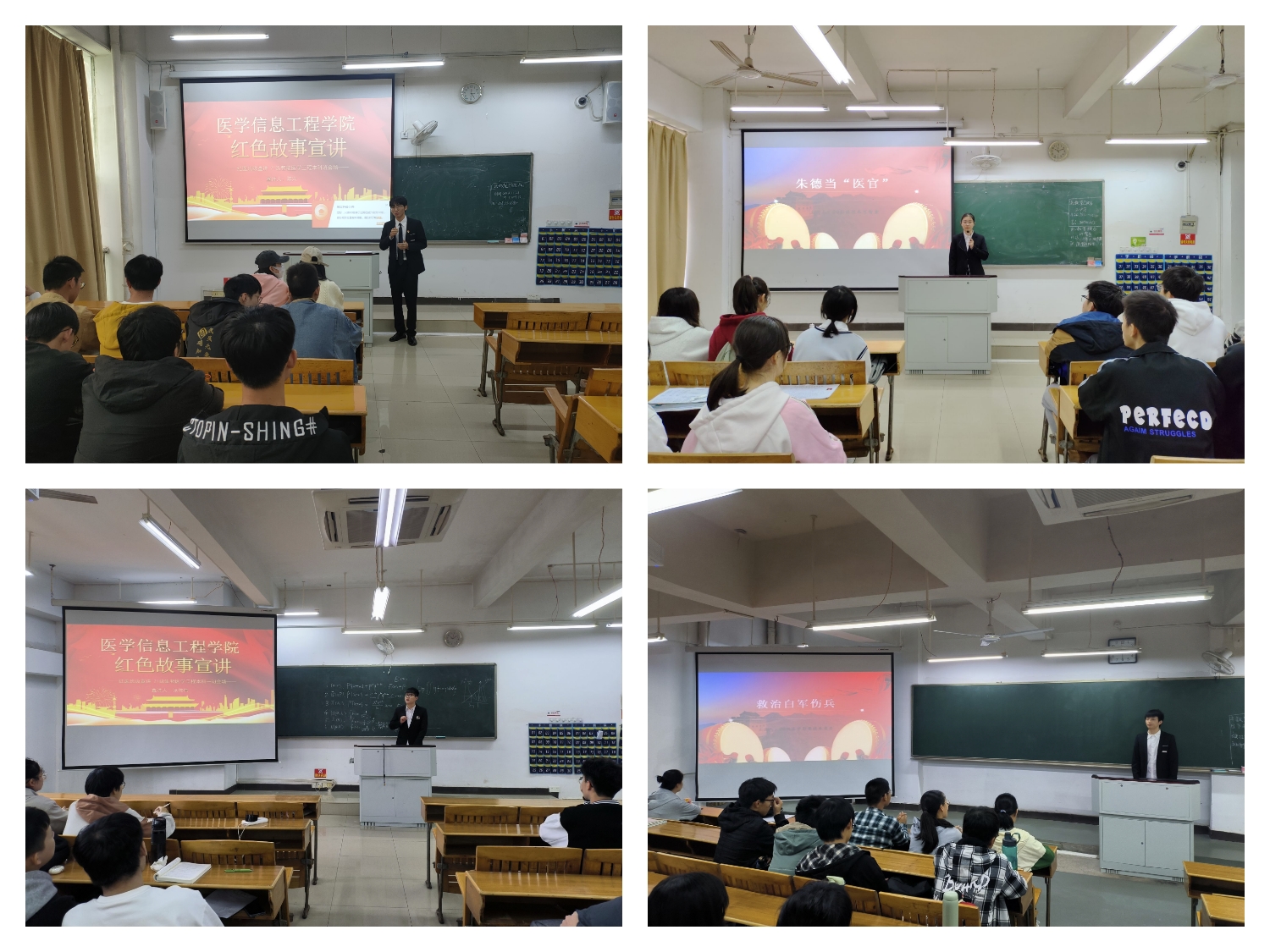 11月中旬以来,医学信息工程学院从红医班级中选拔优秀学生代表组建“红色宣讲队”,面向全院在校生25个班级开展“红色故事”宣讲活动。