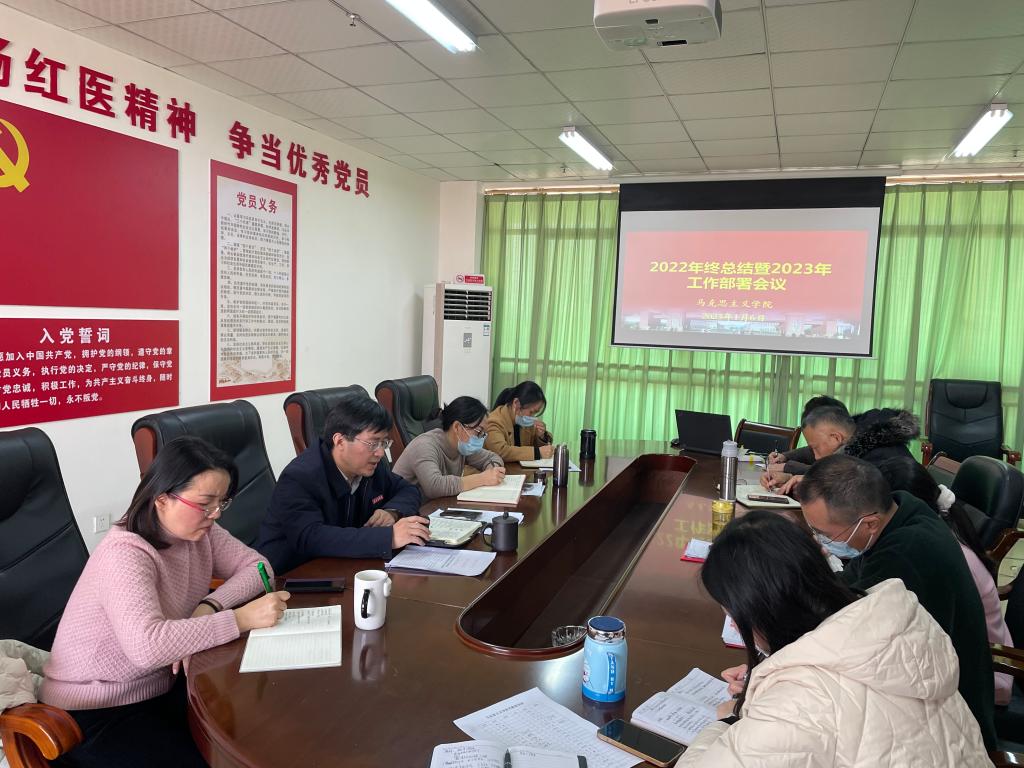 1月6日,马克思主义学院召开2022年度总结暨2023年工作部署会议,学院领导班子及各科室负责人参会。
