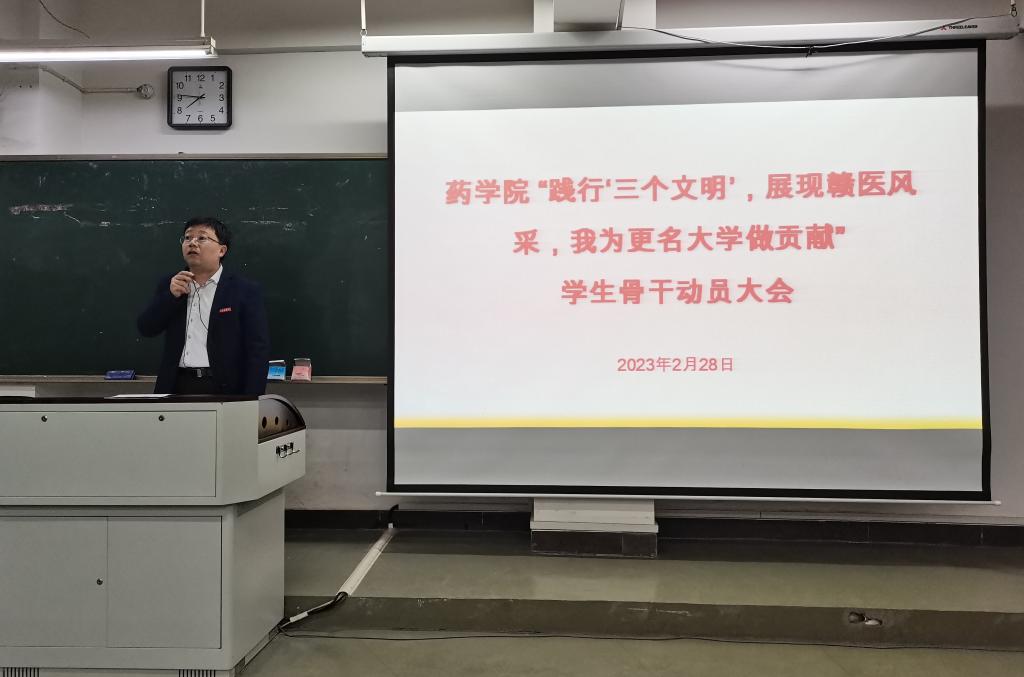 2月28日,药学院在黄金校区召开我为更名大学做贡献学生骨干动员大会。该院党委委员、副院长黄浩,学工办辅导员及全体在校生党员、学生干部参会。