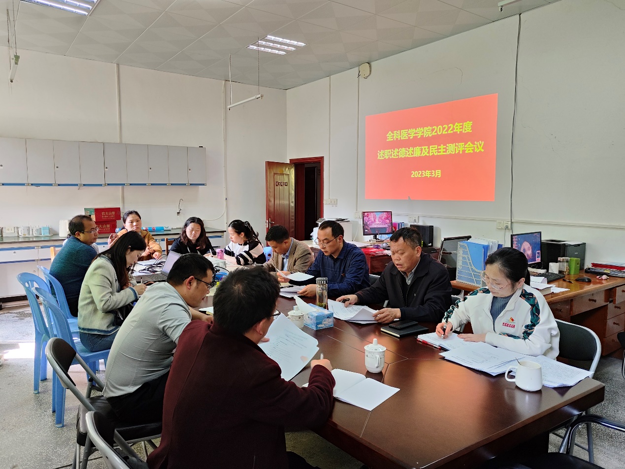 3月10日下午,全科医学学院在章贡校区召开了2022年度领导班子及处级干部述职述德述廉会议,学校测评组到会考核测评,该院全体教职工参加会议,学院党委书记张自翔主持。