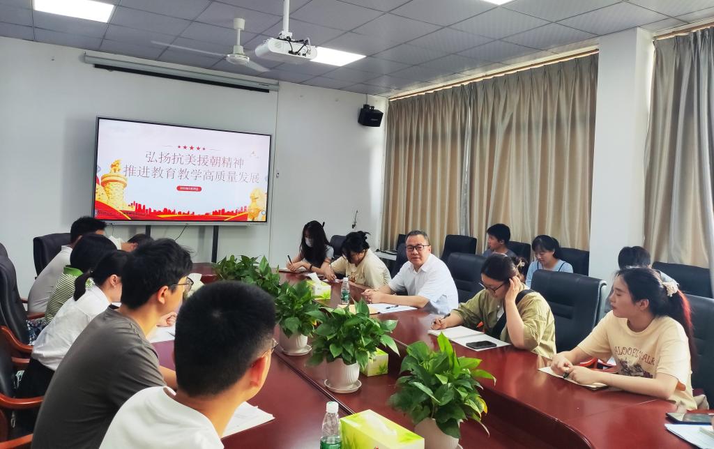 5月26日,护理学院党委书记陈志远以《弘扬抗美援朝精神,推进教育教学高质量发展》为题,为该院学生第一党支部党员讲授专题党课。