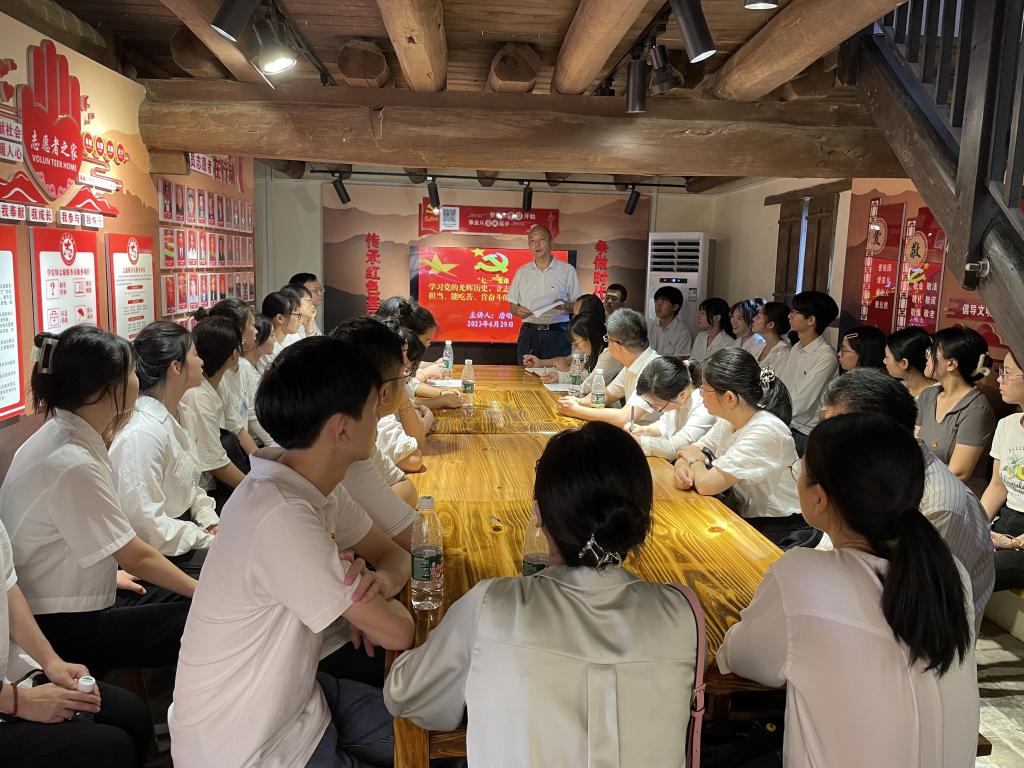 6月29日,在郭大力故居参观学习现场,医学信息工程学院党委书记唐明讲授“七一”党课,师生党员近50人参加。
