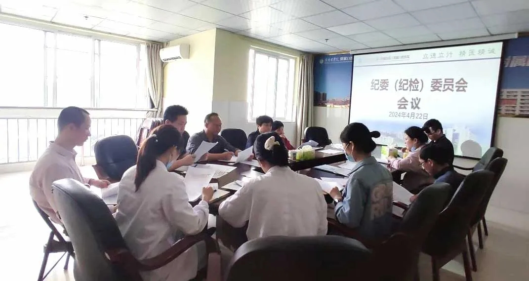 4月22日,第三临床医学院(三附院)党委委员、纪委书记王春华主持召开纪委(纪检)委员会议,传达学习二十届中央纪委三次全会、省纪委十五届四次全会,省、市卫健委和学校全面从严治党会议精神,研究医院纪委贯彻落实举措;传达学习中央、省委、学校和医院关于党纪学习教育相关会议精神,研究医院纪委党纪学习教育工作。