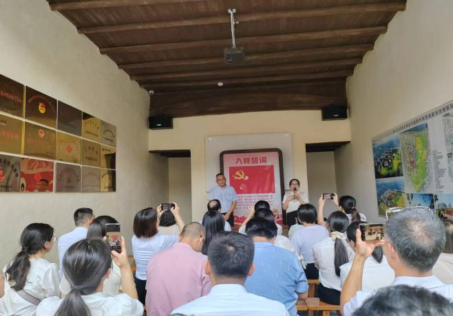 在郭大力故居,师生党员们面向党旗重温了入党誓词。随后,在讲解员的引导下,参观了故居内珍藏的照片、书籍和文献资料,深入了解了郭大力同志的生平事迹。